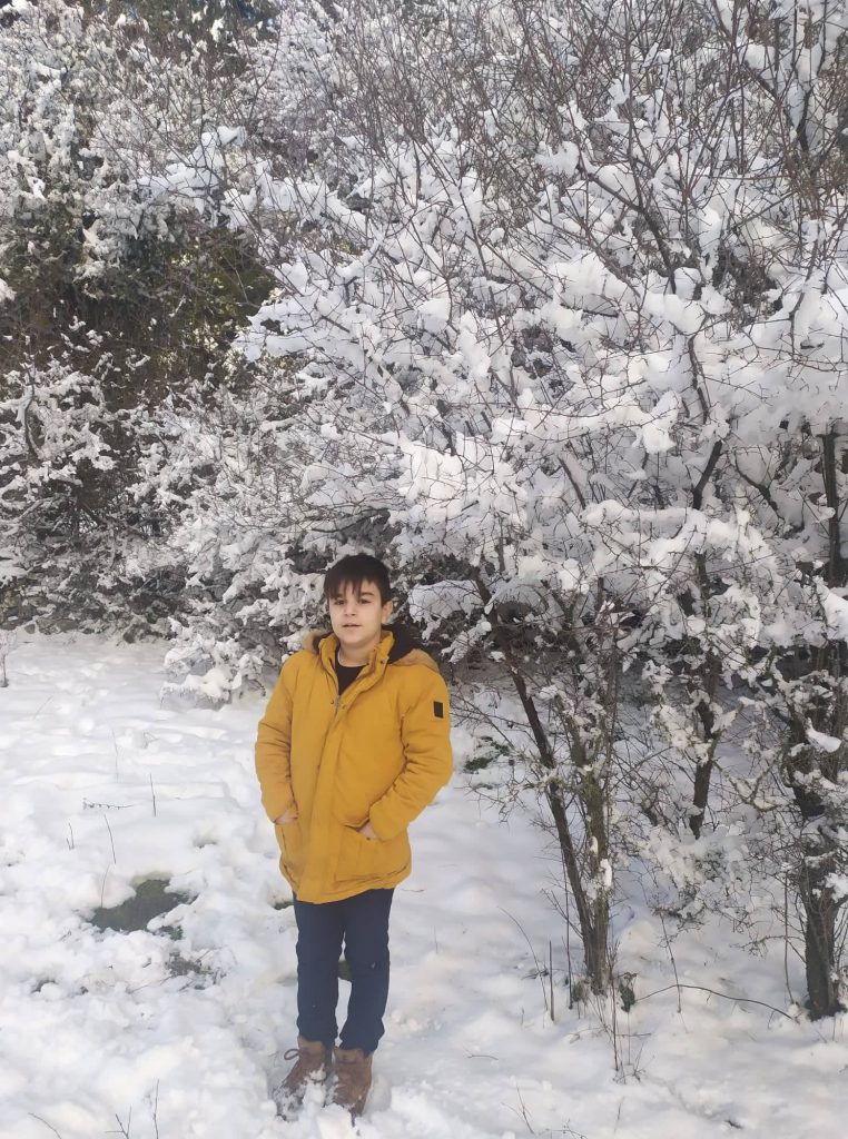 Yesterday we went to Agiasos to go and see the snow when we arrived we got out of the car and went to play in the snow we played snow with my little brother with my mom and dad after a while we thought to make a snowman we went a little further to see the view